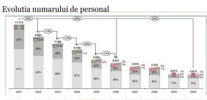 Conform planului de restructurare, publicat pe site-ul companiei în anul 2023, în acest an ar fi trebuit să mai rămână 4.521 de salariați.