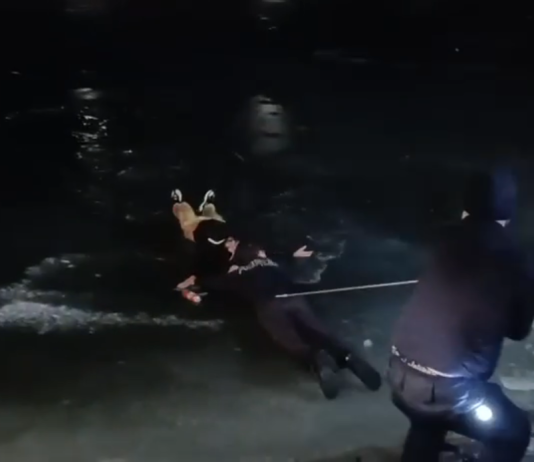 Imagini din timpul intervenției de miercuri seara, din municipiul Târgu Jiu, unde un autoturism a căzut în râul Jiu, au fost făcute publice de...