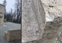 Ansamblul Brâncuși de la Târgu Jiu pare lovit de ghinion. Una dintre băncile din piatră, de lângă Poarta Sărutului, a rămas fără un colț....